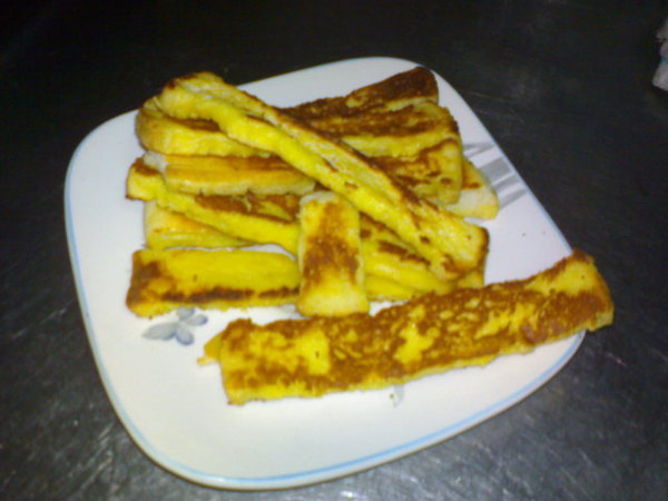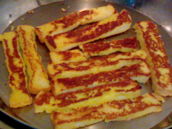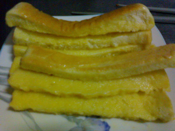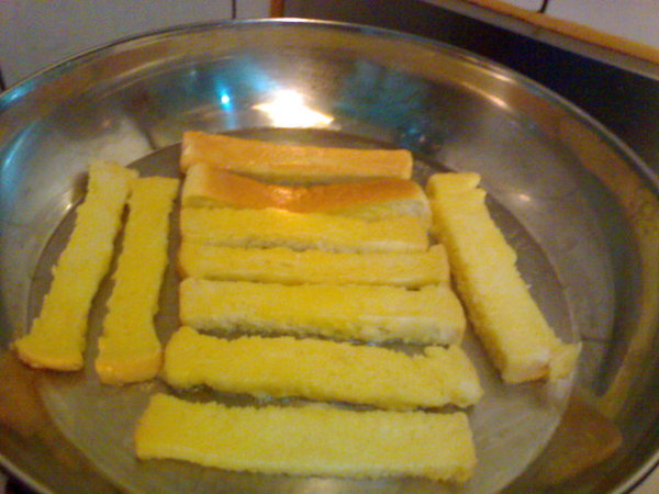 註:一般都是整片吐司沾蛋汁,但我喜歡用成條狀